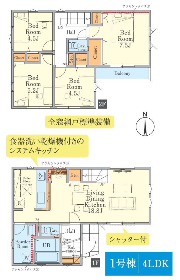 ・1階の掃き出し窓にシャッター付き