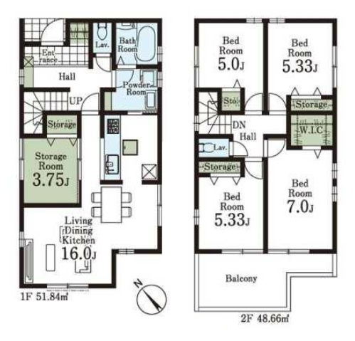 ・玄関収納・ウォークインクローゼット・各室収納など収納豊富、奥行きのあるバルコニー付きの4LDK。