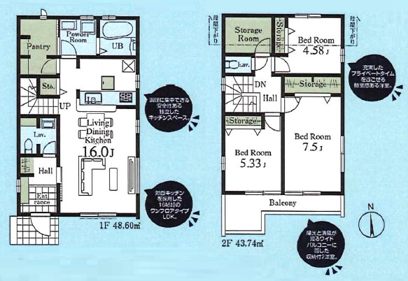 ・パントリーや納戸など収納豊富、奥行きのあるバルコニー付きの3LDK+S。