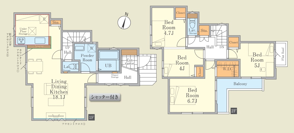 ・全窓網戸標準装備、1階の掃き出し窓と腰高窓にシャッター付き