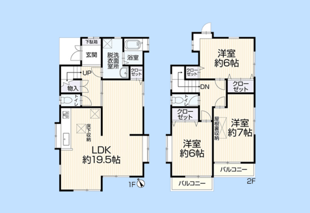 ・広々としたLDK19.5帖、全室収納付きの4LDK。