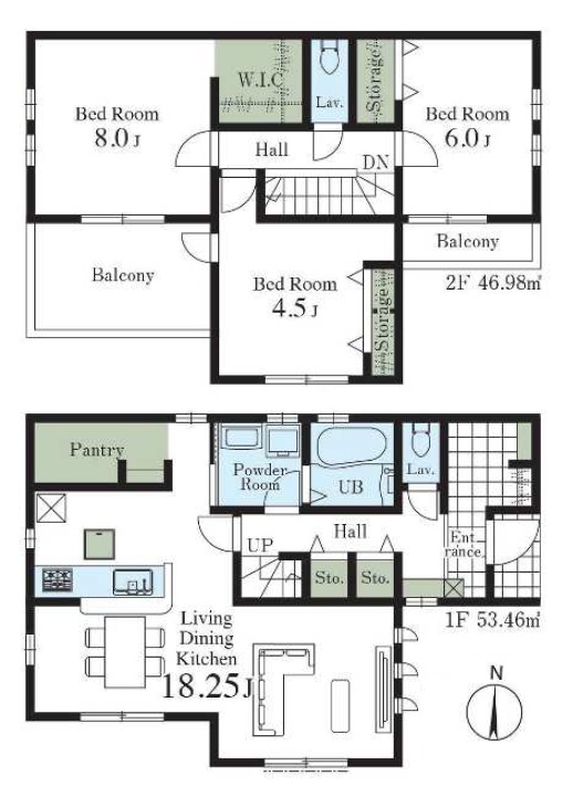 ・パントリー・ウォークインクローゼット・各室収納など収納豊富、奥行きのあるバルコニー付きの3LDK。